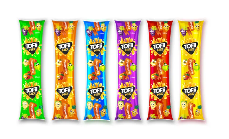 Geladinho Tofii Mix é elaborado em 5 deliciosos sabores - Morango, Laranja, Uva, Limão e Tutti-Frutti, refrescante e que faz a alegria da criançada em qualquer hora do dia. Geladinho com qualidade e sabor é Tofii Mix.